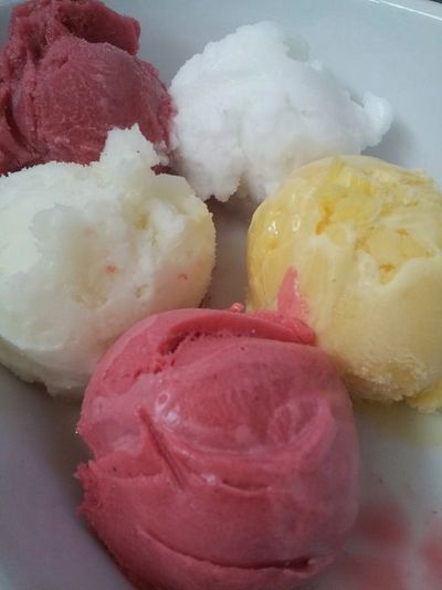 Especially in the summer there are also dairy free Sorbets made with real fruit.