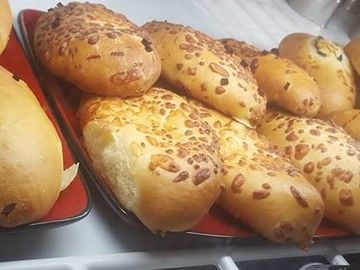We make our dinner rolls with the same Brioche dough as is used in the cinnamon rolls and stuffed brioche. We don’t always have any on hand but call to order any day by 3 pm. for the next mornings baking.