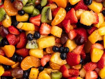 Melons and grapes and maybe kiwi and maybe berries and maybe orange segments and maybe coconut.